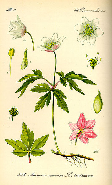 Bildmaterial Prof. Dr. Otto Wilhelm Thomé Flora von Deutschland, Österreich und der Schweiz 1885, Gera, Germany. Permission granted to use under GFDL by Kurt Stueber. Source: www.biolib.de. Diese Bild- oder Mediendatei ist gemeinfrei, weil ihre urheberrechtliche Schutzfrist abgelaufen ist. Dies gilt für die Europäische Union, die Vereinigten Staaten, Australien und alle weiteren Staaten mit einer gesetzlichen Schutzfrist von 70 Jahren nach dem Tod des Urhebers. http://de.wikipedia.org/wiki/Datei:Illustration_Anemone_nemorosa0.jpg