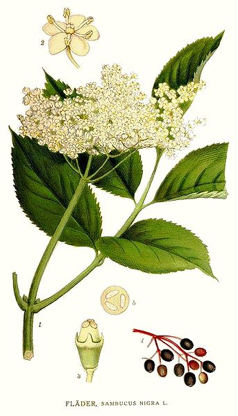Synonyme: Bour-tree (Engl.), Elder (Engl.), Flieder, Grand sureau (Frz.), Holder, Holler, Sambuco nero (It.)