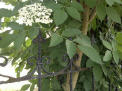 Aussehen: 1,5 - 7 m hoch werdender Strauch oder Baum. Die Äste haben eine korkartige Borke und einen unangenehmen Geruch. Grüne, elliptische Blätter und weiße Einzelblüte, die weiße Schirmrispen bilden. Die beerenartigen Früchte sind rot und reifen dann zu schwarzer Farbe mit drei Samen.