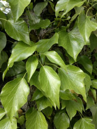 Aussehen: 20 - 50 m langer immergrüner Kletterstrauch. Die lederartigen grünen Blätter haben Formen von mehrfach gelappt bis glattrandig. Die Blüten blühen meist weißlich oder gelbgrün in Dolden aus denen dann kugelige, erbsengroße Früchte von rötlich violetter bis dunkelbrauner Farbe entstehen.